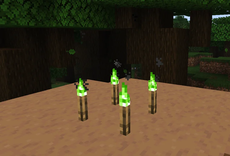 Funktioniert wie eine normale Fackel, gibt aber eine markante grüne Flamme 🌿 ab