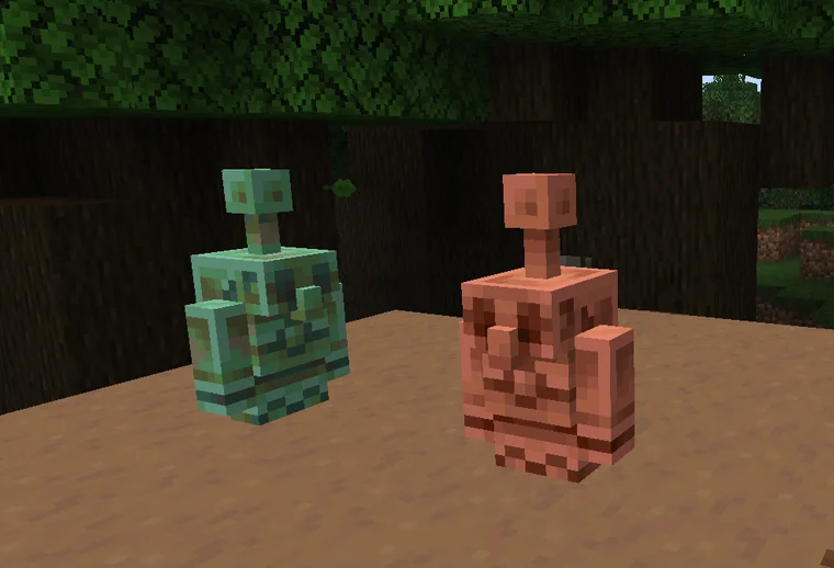 Der Kupfergolem ist ein kleiner, mechanischer Mob aus Kupferblöcken, der Charme und Nutzen in deine Minecraft-Welten bringt. Seine Hauptbesonderheit ist das Drücken zufälliger Kupferknöpfe – perfekt für Redstone-Konstruktionen und interaktive Bauten. Wie Kupferblöcke oxidiert er mit der Zeit, es sei denn, er wird mit Honigwabe gewachst, was ihm ein einzigartiges, sich entwickelndes Aussehen verleiht. Egal, ob du ihn aus Spaß spawnen lässt oder in deiner Survival-Basis behältst: Der Kupfergolem bringt Persönlichkeit und Bewegung in deine Bauten.